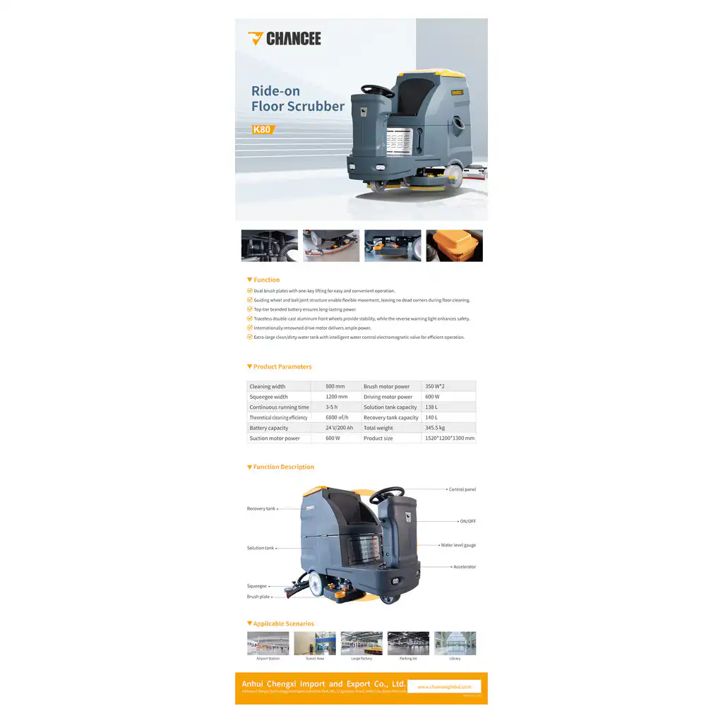 Kada je potrebno očistiti hiljade kvadrata brzo, temeljno i bez zastoja, klasične ručne metode postaju prespore i preskupe. Chancee K80 je visokoklasna ride-on mašina za pranje i sušenje podova, razvijena za velike objekte i zahtevne uslove rada – uz snažan pogon, moćan usis i dupli sistem četki koji daje vidljivo bolji rezultat.