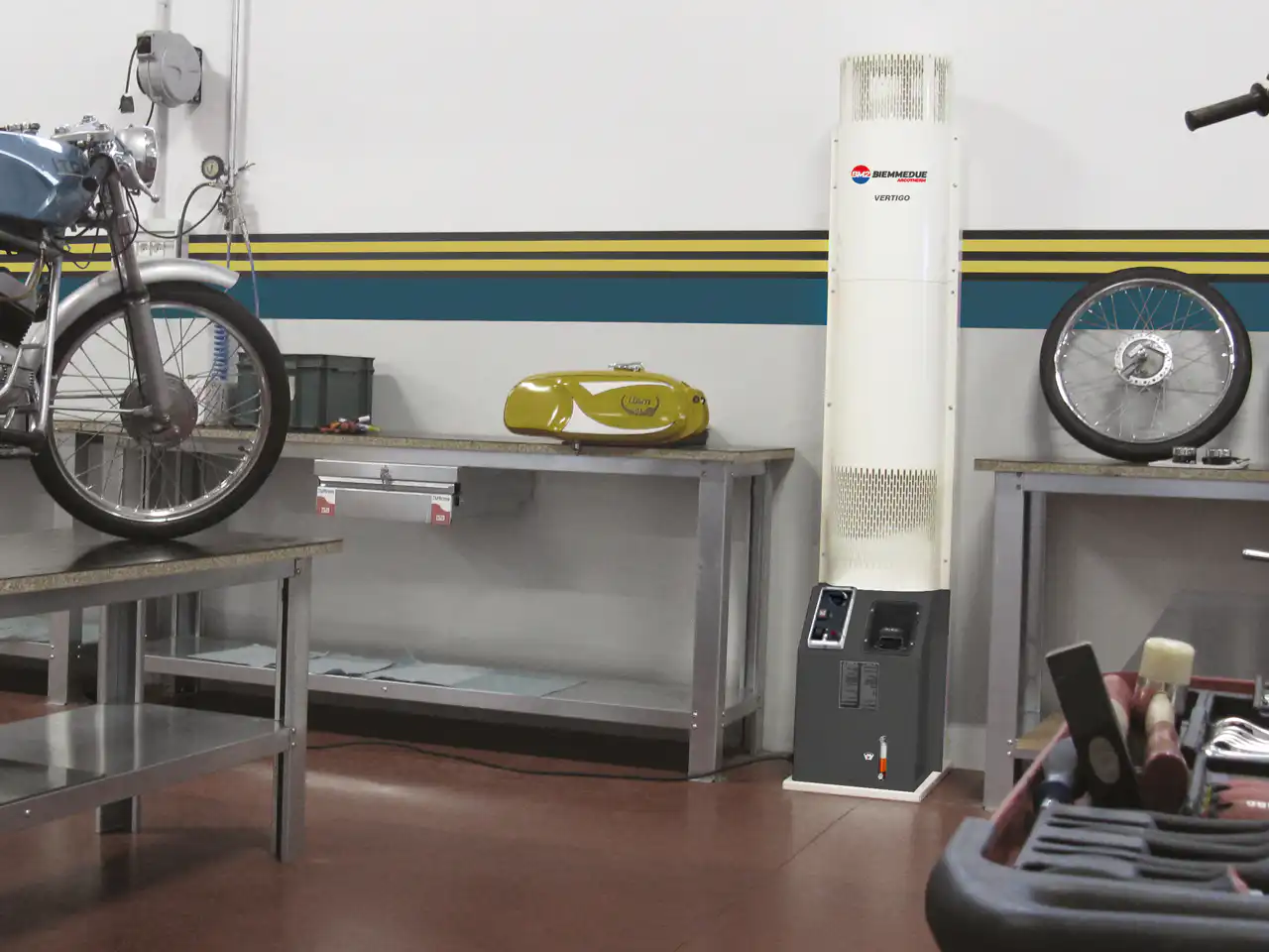 Kompaktni dizel grejač BIEMMEDUE VERTIGO sa integrisanim dizel gorionikom i rezervoarom od 35 litara, snage 18,2 kW. Sa naprednim sistemom indirektnog sagorevanja i tihim radijalnim ventilatorom, ovaj uređaj pruža efikasnost od 93% i protok vazduha od 1.750 m³/h. Posebno je pogodan za grejanje zatvorenih prostora poput restorana, crkava i konferencijskih sala, a zahvaljujući skrivenim točkovima omogućava lako premeštanje prema potrebi.