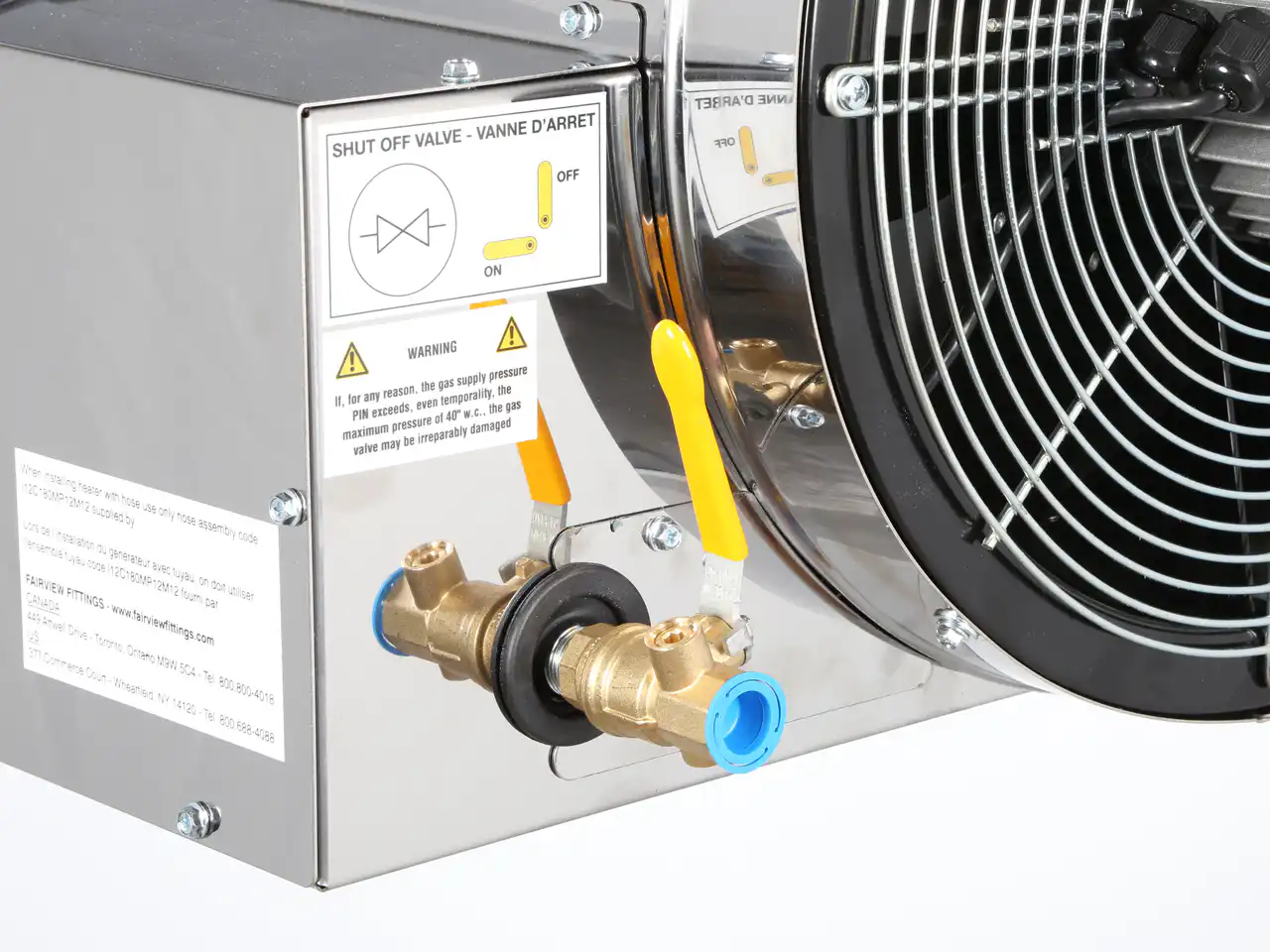 BIEMMEDUE GA N 45C je profesionalni viseći niskopritisni grejač na prirodni gas ili TNG/LPG (G20/G31) sa direktnim sagorevanjem, snage 45,64 kW , koji radi pod niskim pritiskom (20-30 mbar). Sa konstrukcijom od AISI 430 nerđajućeg čelika i automatskim paljenjem, ovaj grejač pruža 100% efikasnost i mogućnost daljinske kontrole.