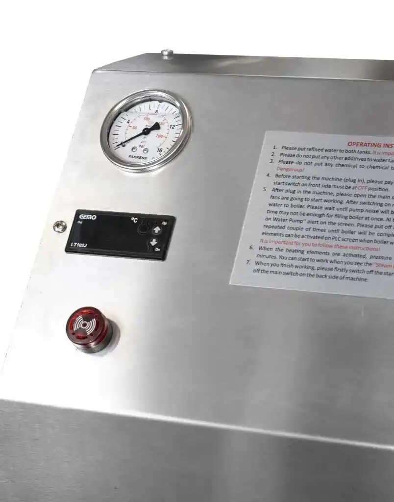 Industrijski Paročistač Steam Italy SI27 je mašina za čišćenje suvom parom izrađena od nerđajućeg čelika, čvrsta, dugotrajna i sa minimalnim potrebama za održavanjem. Opremljena je automatskim punjenjem vode i termostatom za dodatnu sigurnost. Laka je za upotrebu i transport, što je čini savršenim izborom za industrijsko čišćenje.
