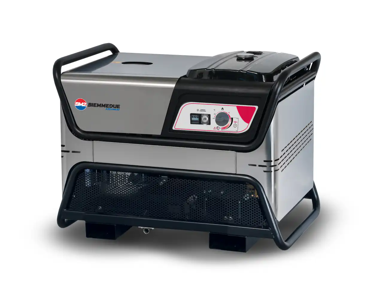 Comby kontroler za maksimizaciju performansi, ovaj perač pod pritiskom sa toplom vodom je opremljen visokoefikasnim kotlom sa električnim napajanjem od 12 VDC. Postoji električni panel sa termostatom kotla.