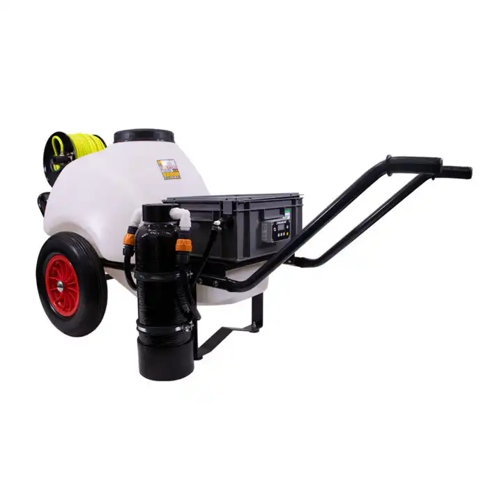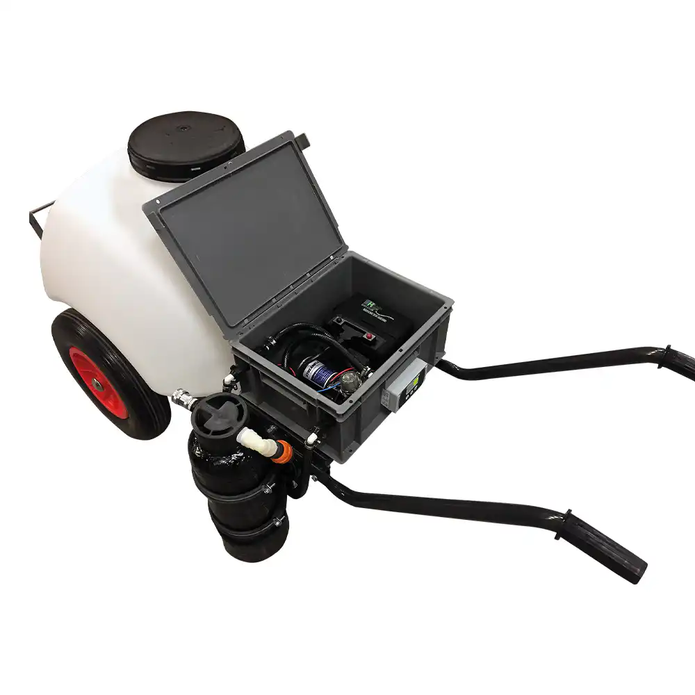 Tu nastupa Streamflo 120L. Ovo je hibrid između mobilnosti kolica i snage “Van-Mount” sistema. Donosi vam 120 litara vode i sopstveno napajanje direktno na mesto rada.